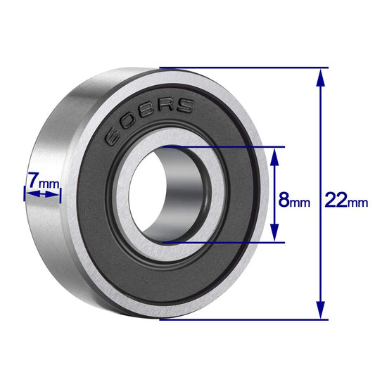 608RS (8x22x7mm) Ball Bearings Metal Double Shielded Radial Ball Bearings | 3D Printer or Robotics or DIY Projects or Wheelchair Wheel