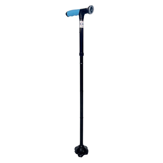 3 Folding 4-Leg Vaccume Base with LED Torch Aluminium Black Lightweight Walking Stick (Cane 1000)