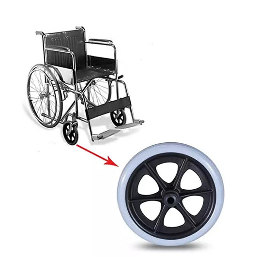 Premium Imported 8 Inch Front Caster Solid PU Wheel Replacement for Wheelchair With Bearing (Pack of 1) - Grey