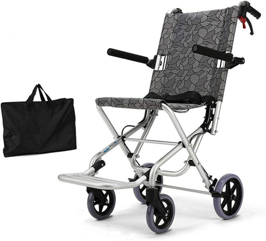 Aluminum Transit Wheelchair With Travelling Carry Bag | Ultra Lightweight Compact Foldable Portable | Flip Up Armrest & Footrest | Attendant Propelled With Brake for Adult, Elderly & Children